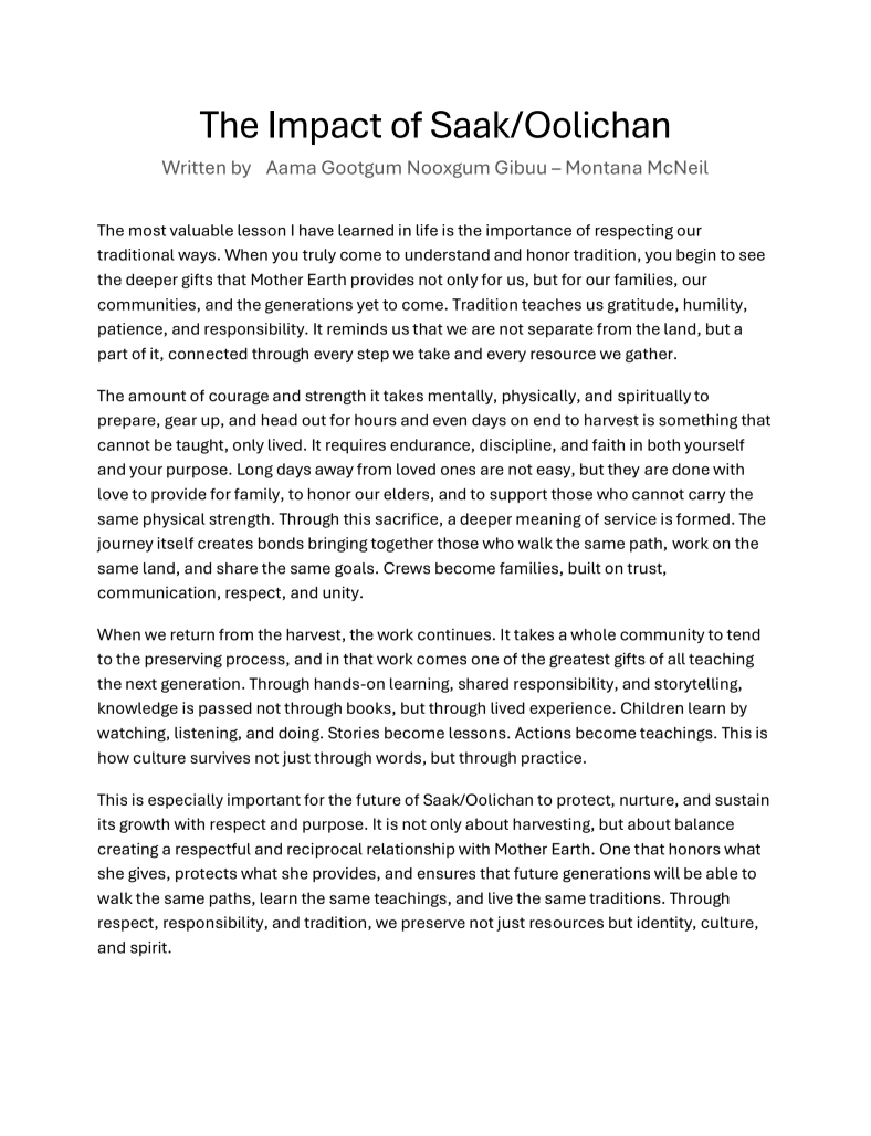 “The Impact of Saak/Oolichan” by Aama Gootgum Nooxgum Gibuu - Montana McNeil